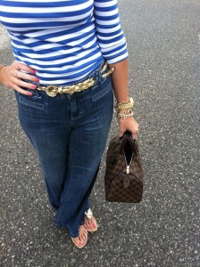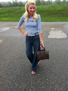 LOVE this outfit, the nautical look, and the Speedy! 😉 I LOVE jeans and wish I could wear them every day…