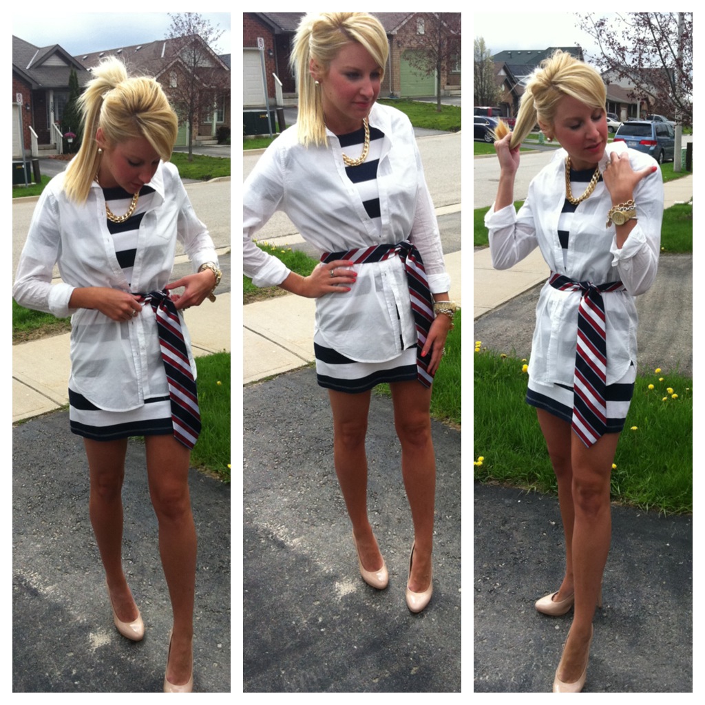 Ohmygosh so freakin’ cute! The first look is my favorite! I may have to steal one of Hubs’s ties. He has a similar one in orange w/ navy. 🙂 Love all the different looks you illustrated!