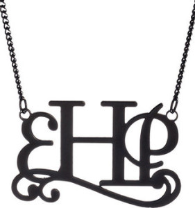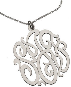 This is seriously the year of the monogram comeback. I remember when I was in college years ago and monogramming everything was huge. I had every piece of the whole Vera Bradley luggage collection monogrammed from the purse to the wallet to every size duffel. Then that faded a little. I think it is safe to say that the monogram is making a serious comeback. With me?  It is coming back in new fun ways that I just love. First was the monogram necklace trend that we all still love.