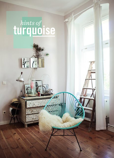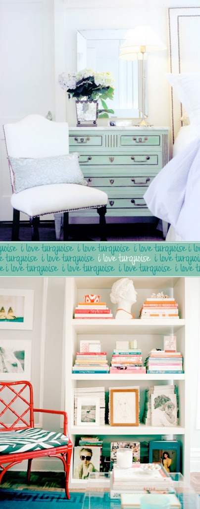 Turquoise in a home just makes me think of a relaxing quaint seaside cottage. I just love the touches of turquoise in these homes. Don’t you? Ah, cold winter days you have already set in, I am dreaming of the beach already.