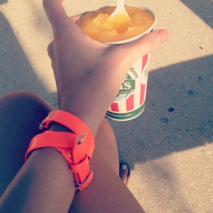 Love the watch! Is that really a Rita’s cup in your hand? We own a Rita’s in Austin. Love that you love the Mango! 🙂