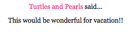 The random winner of the SwimSpot giftcard giveaway is comment #67. Please email me Turtles and Pearls to claim your giftcard!