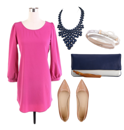 Dress | | Colorblock Clutch | Necklace | Flats | Bow belt