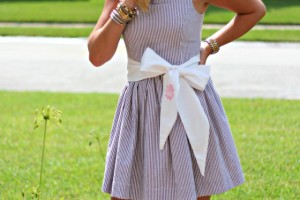 J.Crew T-Shirt | Ann Taylor Stripe Shorts {on sale now extra 40%} | Gold Glitter Belt | C.Wonder Anchor Necklace | Kate Spade Bag | Tory Burch Emmy Nude Sandal