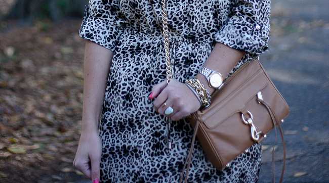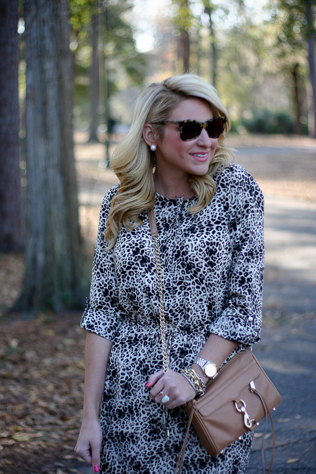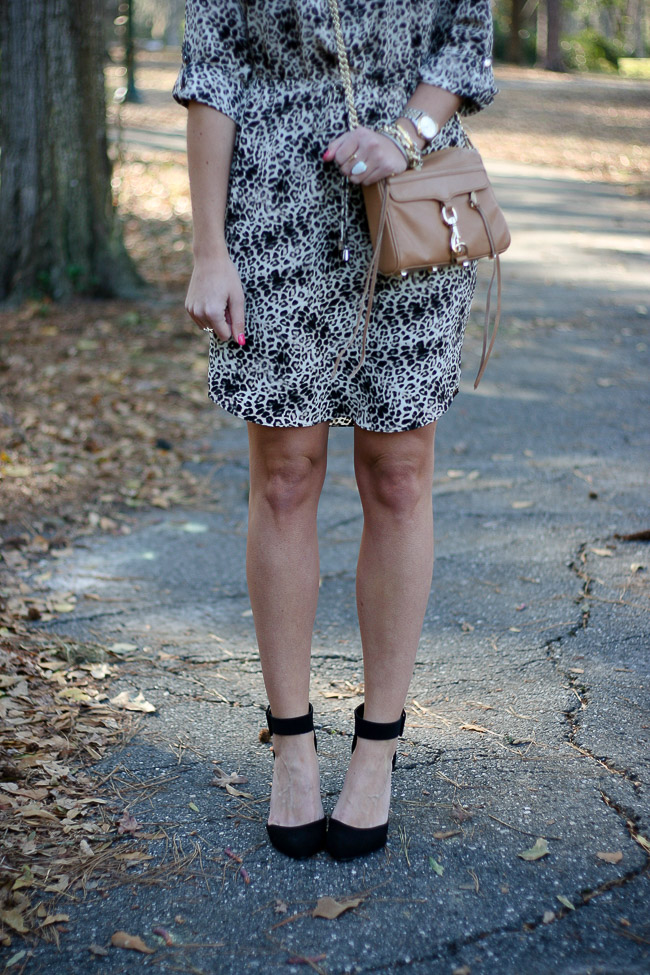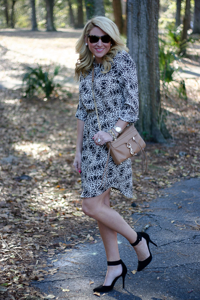 Dress : Vince Camuto Leopard Print Drawstring Shirtdress | Shoes : Black Close Toe Pump | Bag : Rebecca Minkoff ‘Mini MAC’ Convertible Crossbody Bag