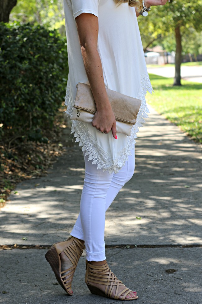 Outfit | Pop of Tassel Earrings | SHOP THE LOOK | JavaScript is currently disabled in this browser. Reactivate it to view this content. Top : Chicwish Comfy Style Hi-Lo Lace Hem Top c/o | Sandals : ‘Neta’ Leather Wedge Sandal | Jeans : Rag & Bone Skinny Jeans | Bag : Flirty Little Foldover in Cream and Cotton White Cobra by KELLY WYNNE c/o | Earrings : Lisi Lerch | Sunglasses : Saint Laurent | Bracelets : Bauble Bar Alex Ani | David Yurman | Nordstrom Earring : Double Pearl 360 Studs | Rings : David Yurman | SHOP MY FAVORITE CHICWISH PIECES | JavaScript is currently disabled in this browser. Reactivate it to view this content. Subscribe | Blog Lovin’ by email or RSS. || Connect | Twitter and Facebook. Thank you Chicwish for sponsoring this post. subscribe withBlogLovin' or Email share follow me onLIKETOKNOW:IT