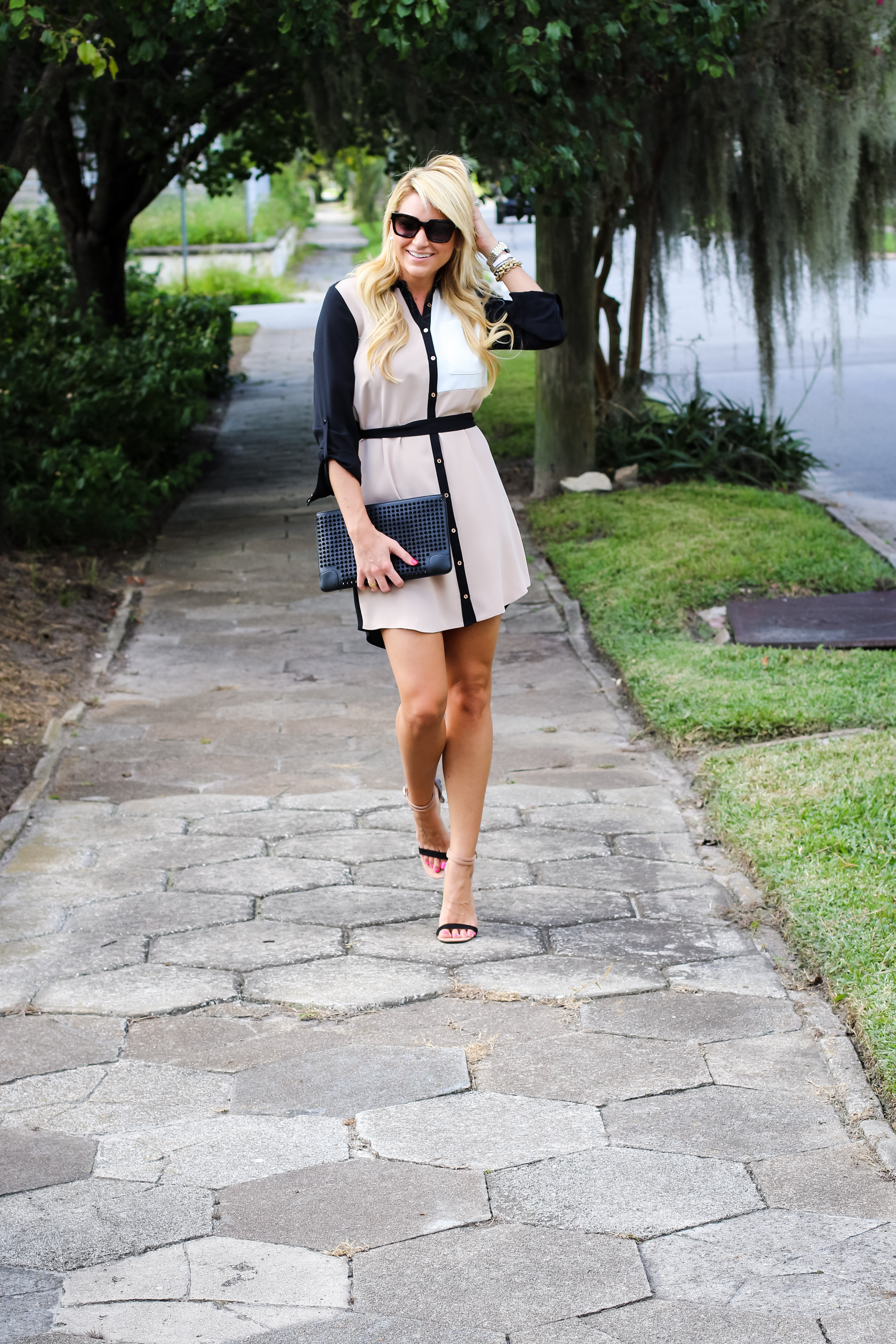 Dress : River Island Colorblock Shirtdress c/o (I am in usa size 4 for those wondering about fit from this line) | Heels : River Island Barely There Snake Heel Sandal c/o (heels fit true to size) | Bag : Givenchy Antigona | Sunglasses : Saint Laurent Sunglasses | Bracelets : David Yurman | Nordstrom | Watch : Marc Jacobs | Earring : Pearl Stud | Ring : David Yurman Ring & Bauble Bar