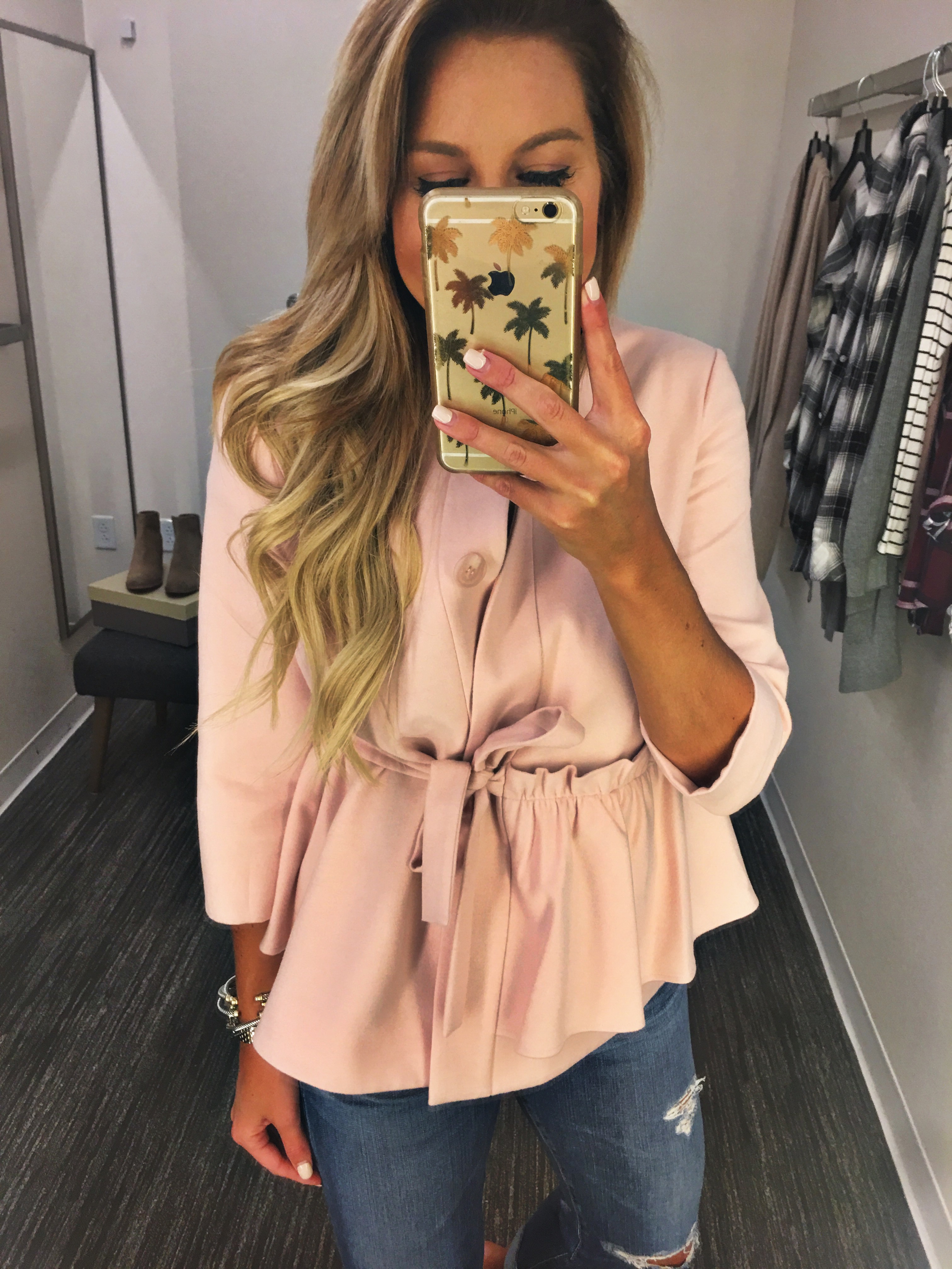 I left this pink peplum jacket in the fitting room but I kind of want to go back and get it along with these amazing boyfriend ripped jeans.