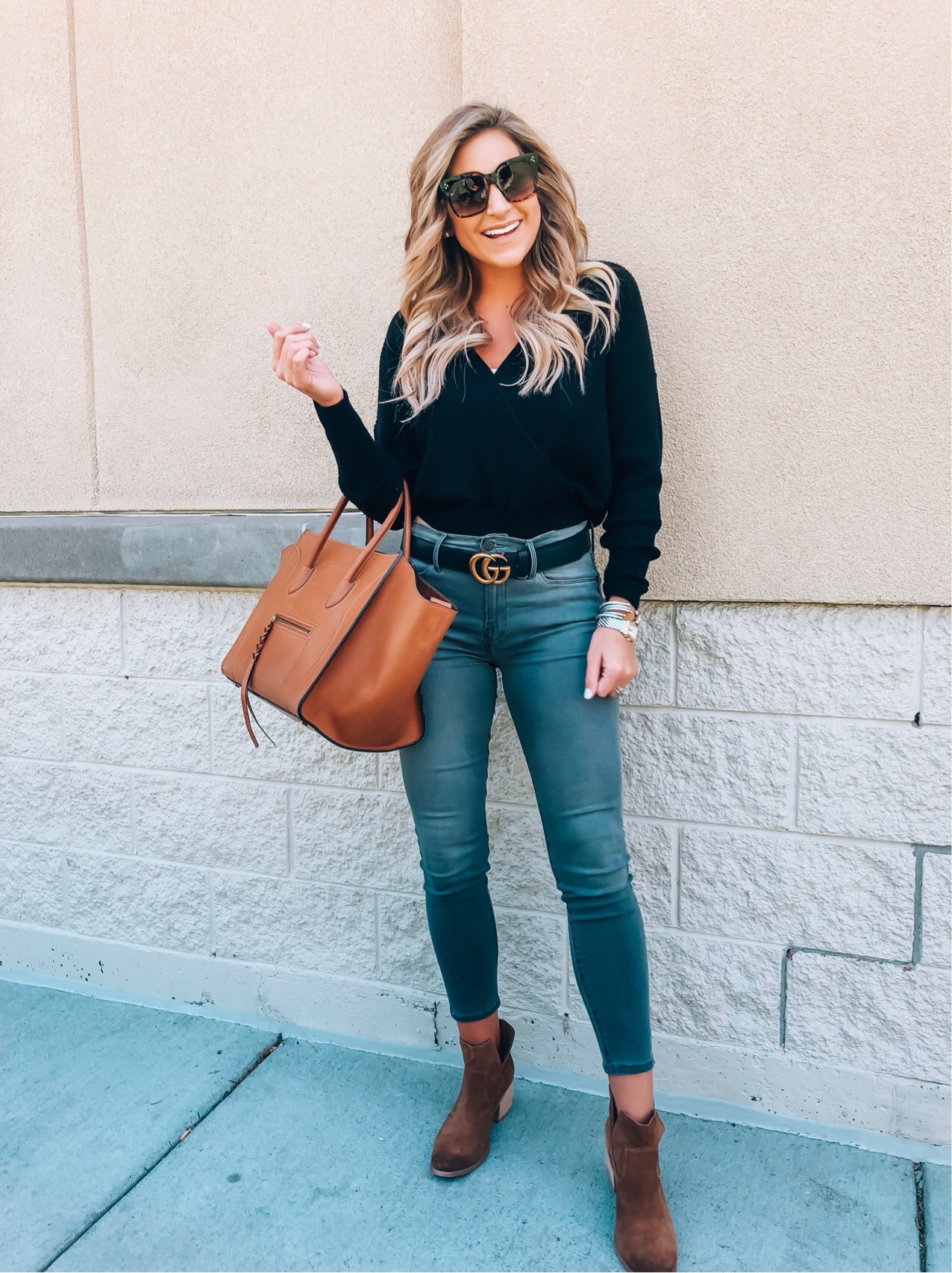 Details: Leith Rib Wrap Sweater size small, runs true to size $39.90, with FRAME Le High Ankle Skinny Jeans (have a great stretch & run true to size, mid rise) on sale for $143.90 with BP Brice Notched Ankle Booties $79.90 (run true to size I got my true 9)