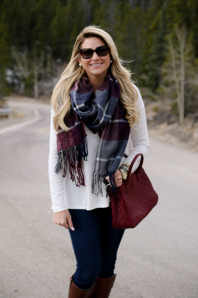 Leggings : Nordstrom Zella Live In Leggings | Shirt : Nordstrom Stripe Top | Wrap Vest : River Island Waterfall Plaid Cape | Boots : Hunter Tall Boot in Gloss Grey | Bag : Tory Burch Robinson Double Zip Tote | Sunglasses : Prada 56mm Sunglasses | Bracelets : David Yurman | Nordstrom | Watch : Daniel Wellington Watch | Earring : Pearl Stud | Ring : David Yurman Ring & Bauble Bar