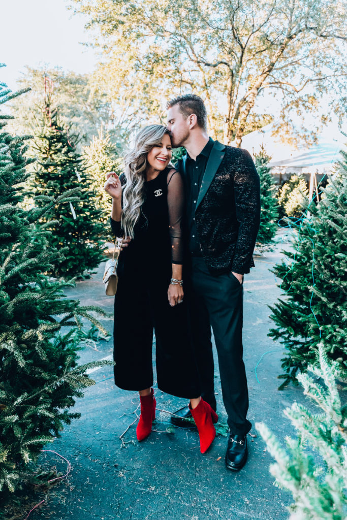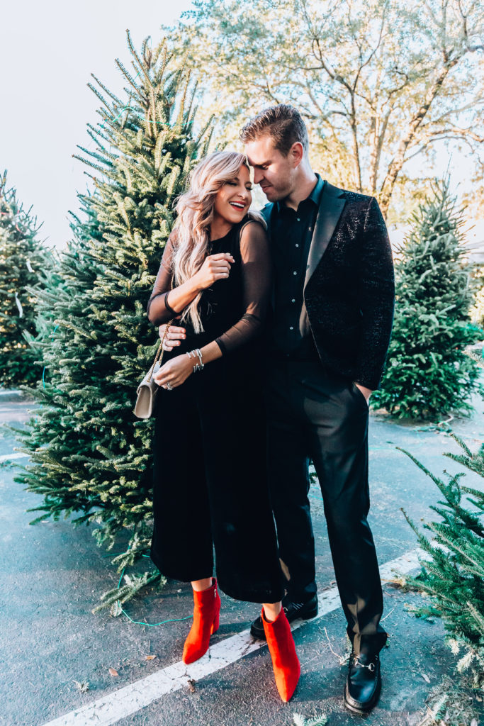 Danielle | Sleeveless Velvet Jumpsuit :: Sheer Mesh Bodysuit by Spanx :: Red Vince Camuto Booties