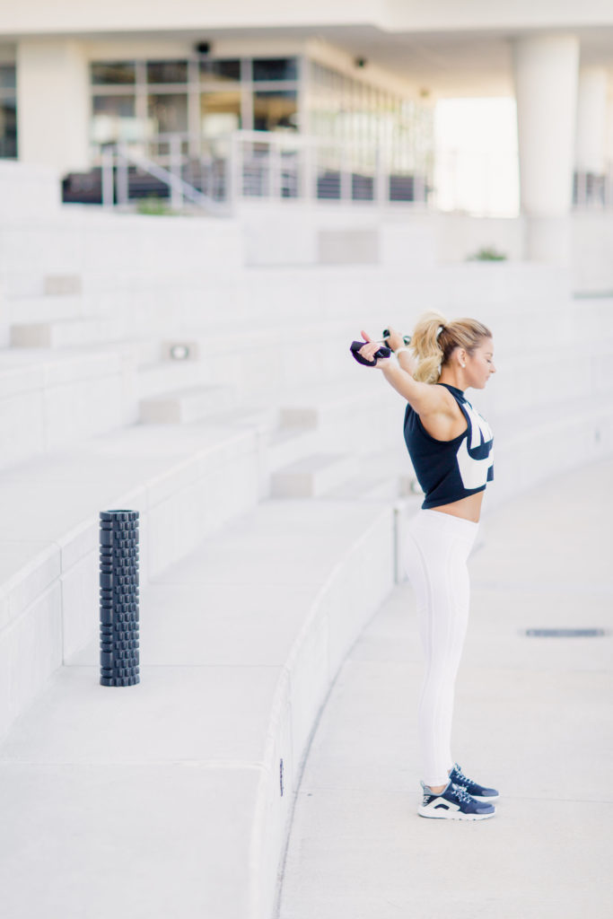My Workout Outfit Details :: Leggings : Alo Highwaist Leggings | Sports Bra : Alo Sports Bra | Tank Top : Nike Tee | Sneakers : Nike Roshe