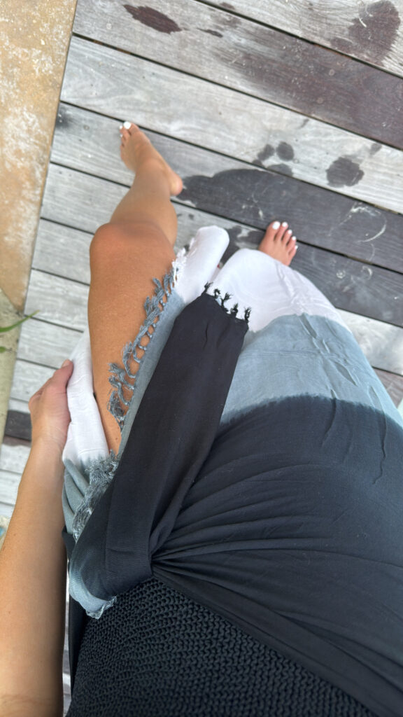 Mommy & me beach day! I’m in a large 2 piece swimsuit, one size sarong, shell hat and accessories- fits tts. Shop the items here!