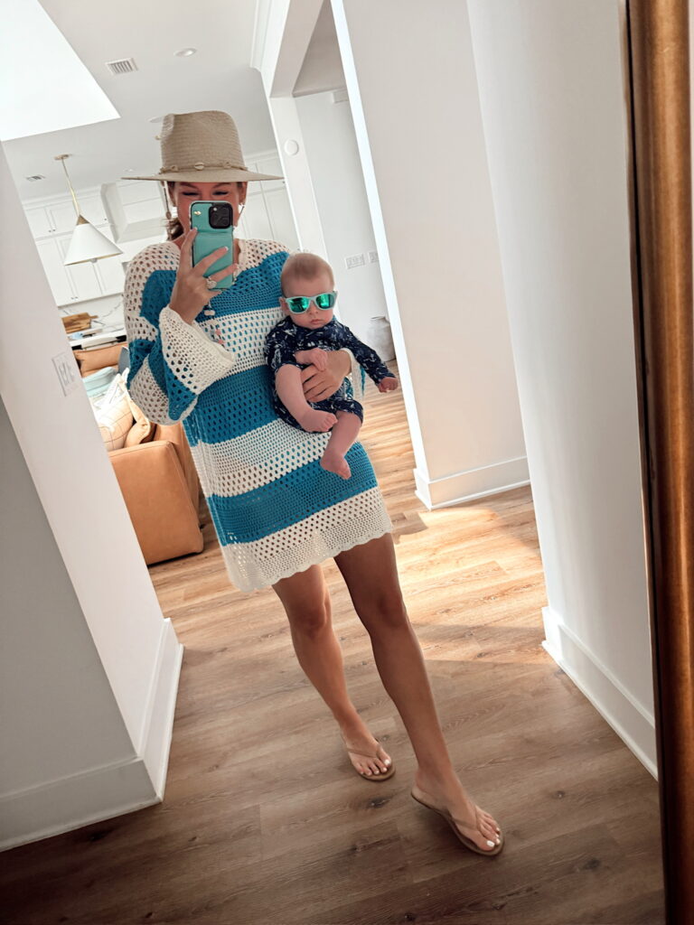 Mommy & me beach day outfits! I’m in a large 2 piece swimsuit & crochet coverup dress, hat and sandals – fits tts. Shop the items here!