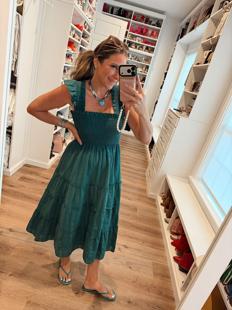 In a small Ellie nap dress from Jill house & sandals, necklaces and accessories from Amazon- fits tts. Shop the items here!