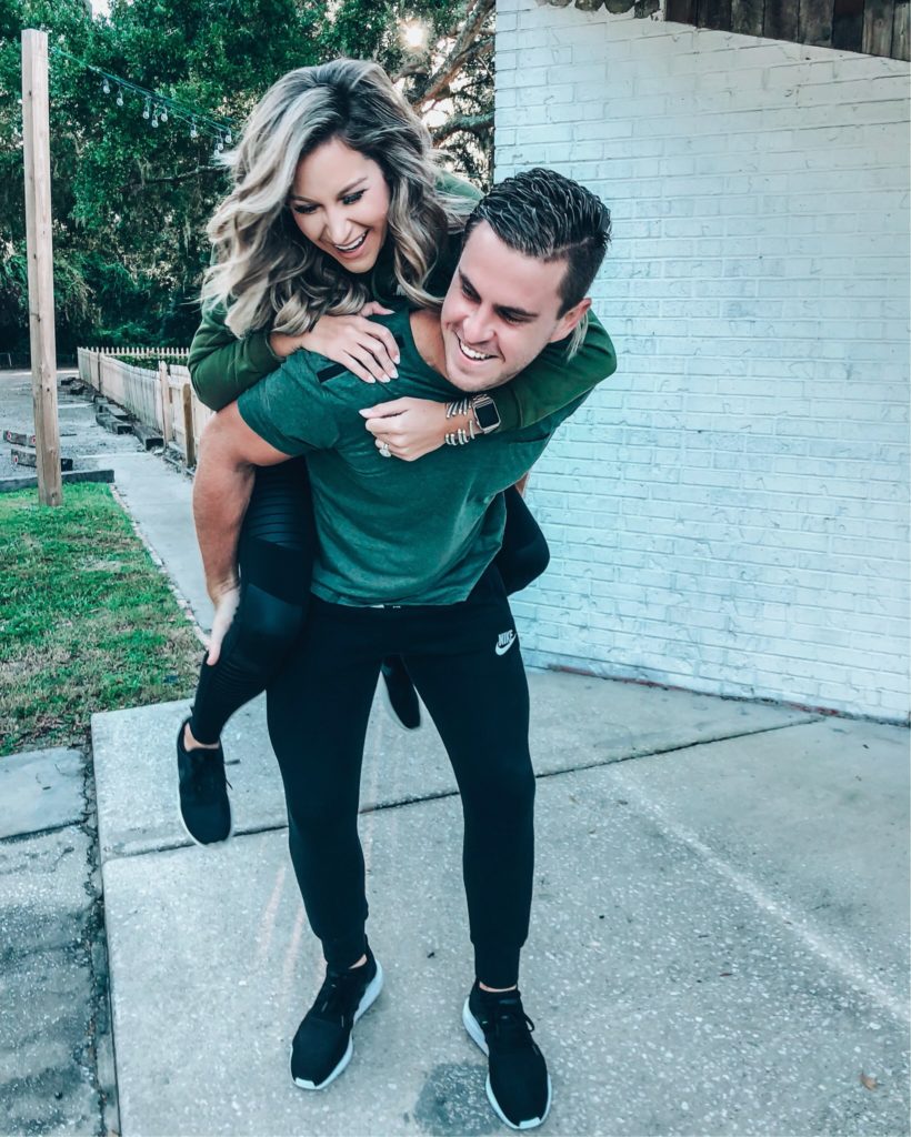 Alo Leggings with Olive Green Nike Hoodie also Nike sweatpants on Sean with Zella T-shirt