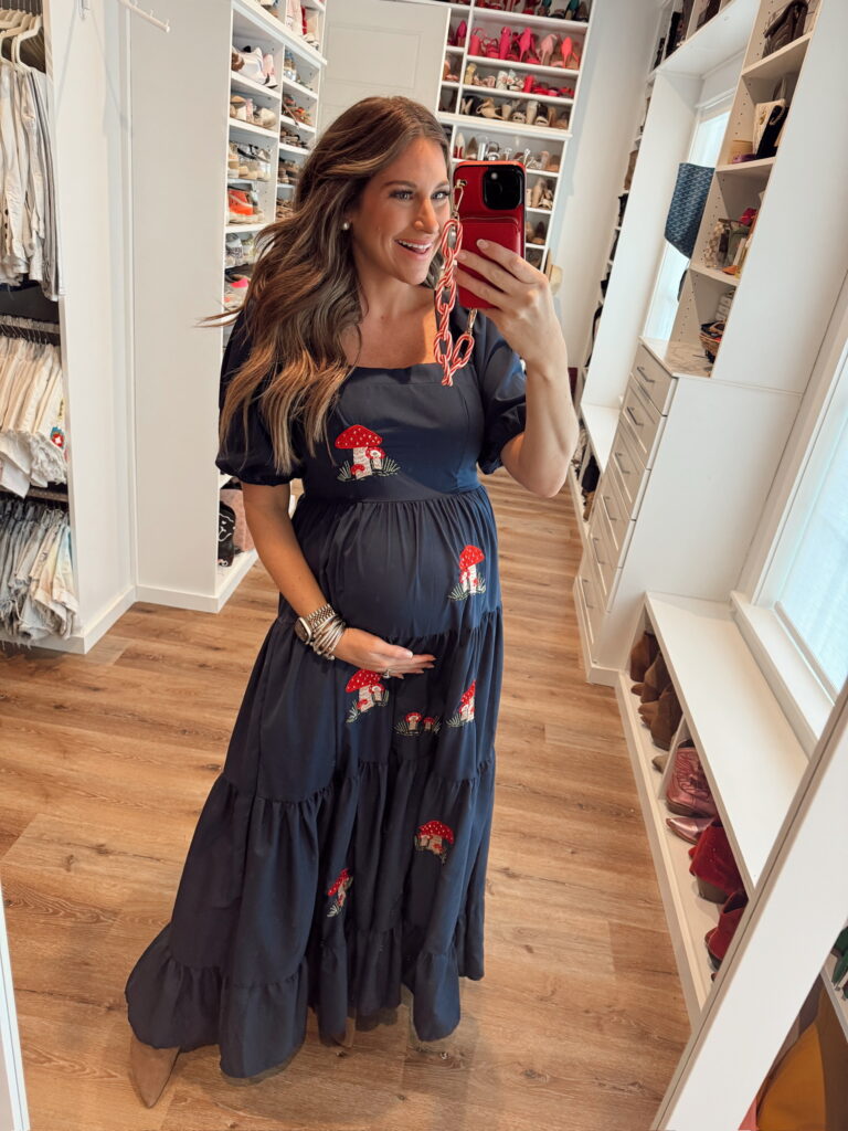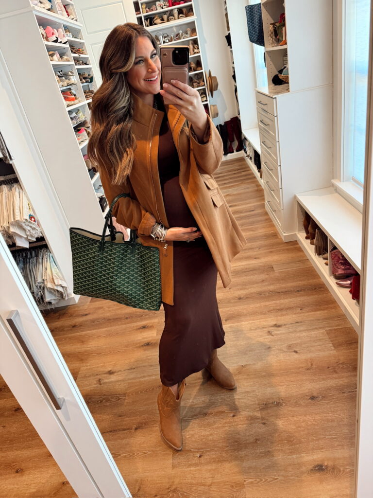 In a large in dress for my bump, medium sweater and ankle boots – fits tts. Shop the items here!