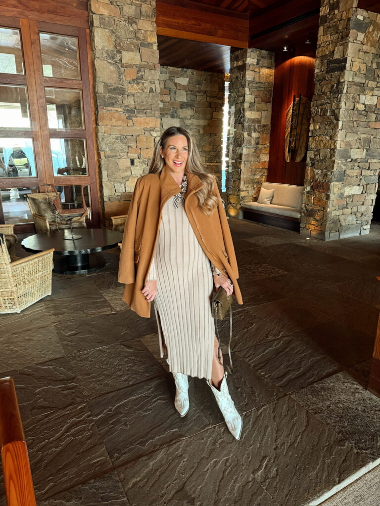 In a size medium in dress and coat – fits tts. Shop the items here!