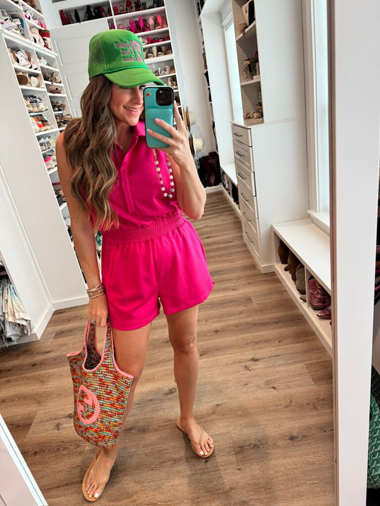 Easy throw on casual outfit that looks put together. In a medium romper, sandals and accessories from Amazon – fits tts. Shop the items here!