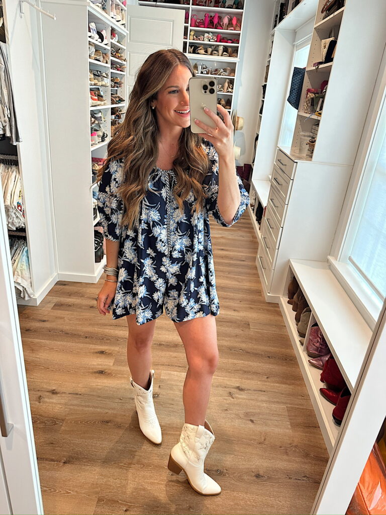 In a small loose romper, ankle cowboy boots and accessories- fits tts. Shop the items here!