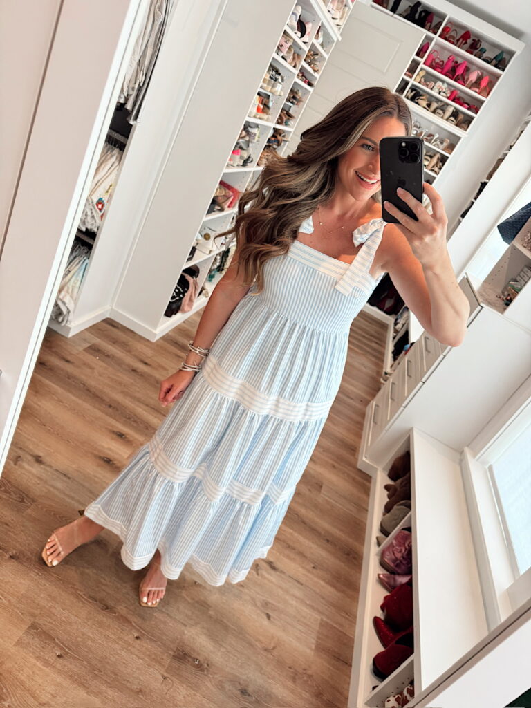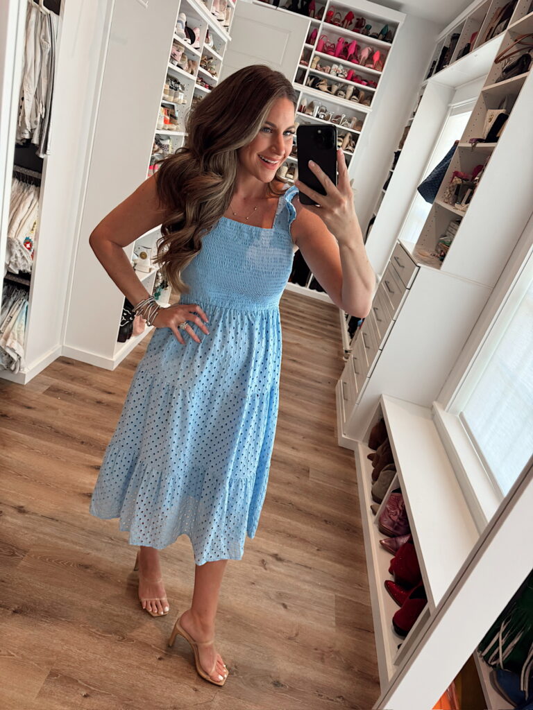 In a medium spring midi for Mother’s Day, heels and accessories- fits tts. Shop the items here!