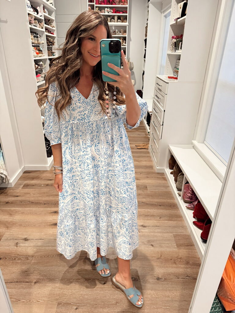 In a medium boho maxi dress, sandals and accessories- fits tts. Shop the items here!