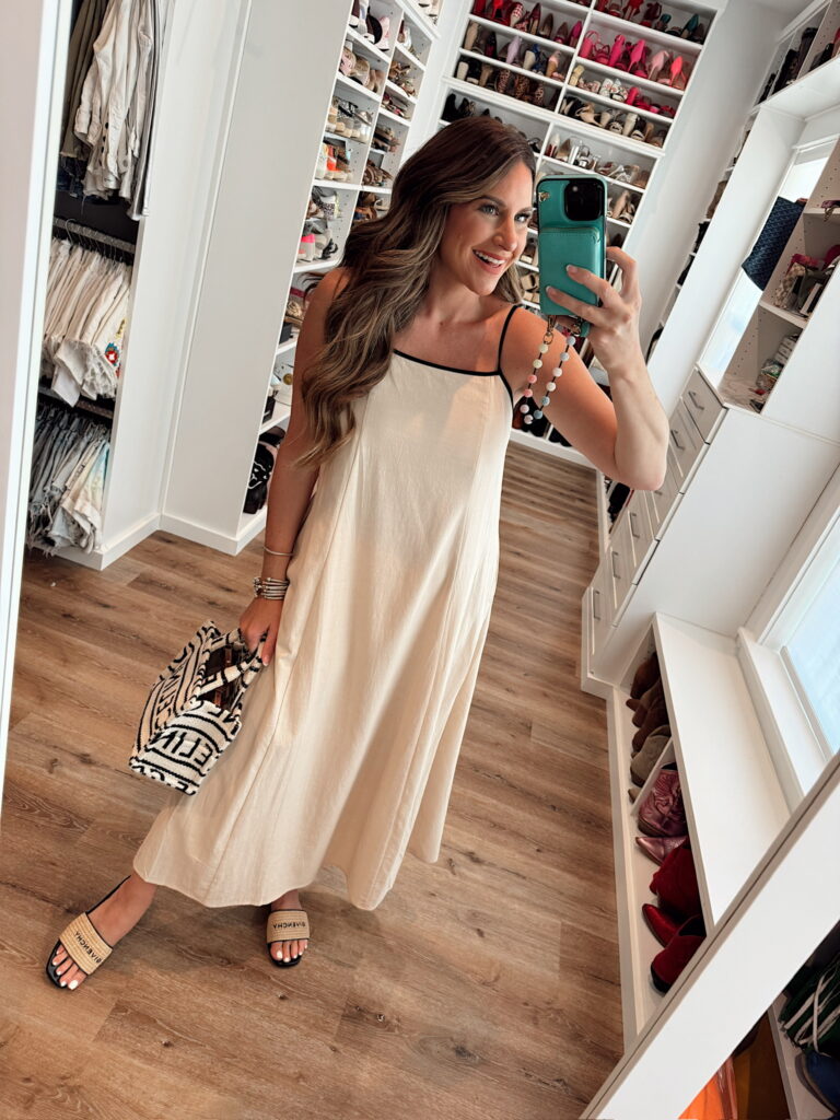 In a medium a line contrast trim maxi dress, sandals and accessories- fits tts. Shop the items here!