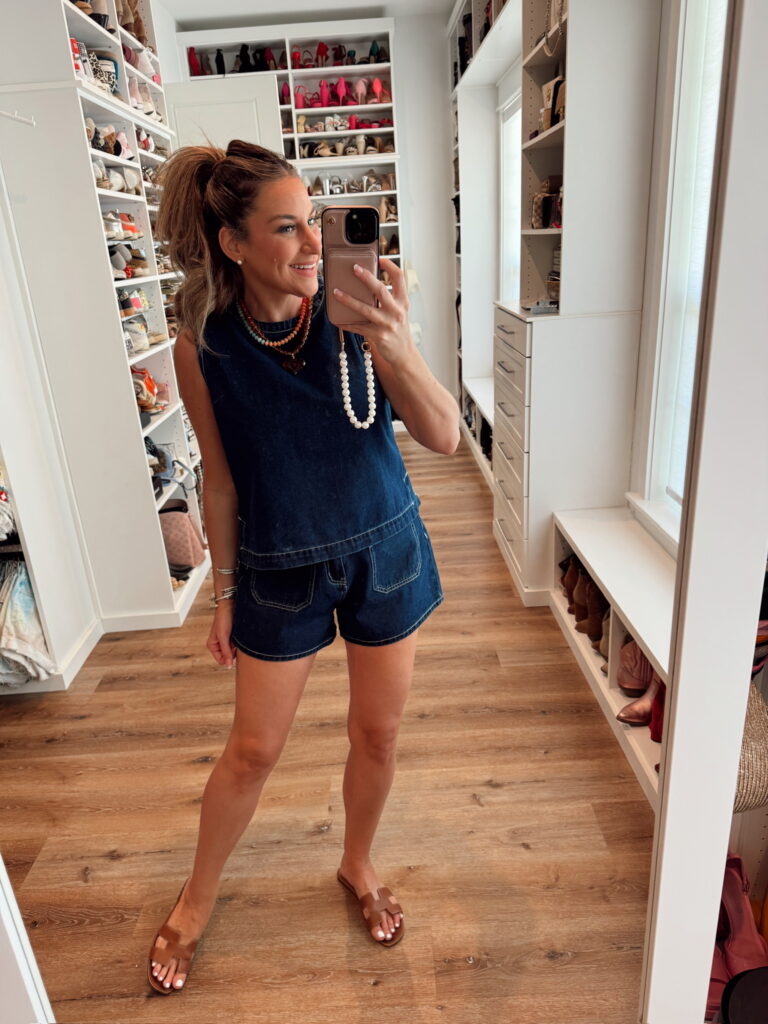 Staycation ootd! In a medium romper from express, sandals and accessories from Amazon- fits tts. Shop the items here!