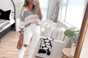 Neutral Sweater & White Jeans