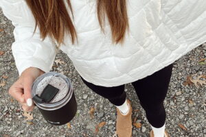 In a medium 2 piece set with knit sweater and joggers, high top sneakers, happy camper trucker hat and accessories for casual/camping outfit – all fits TTS.