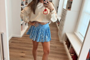 Comfy lounge outfit perfect for Valentine’s Day! In a small sweatshirt and small shorts from Target – fits tts. Shop the look here!