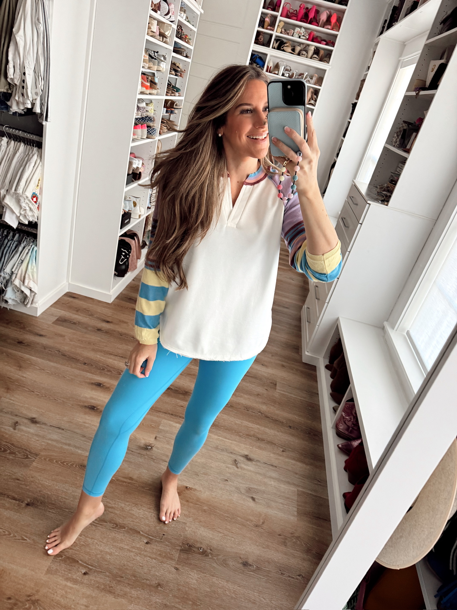 Casual Outfit In a medium stripe sleeve pullover sweatshirt and small leggings – all fits tts. Shop the items here! subscribe withBlogLovin' or Email share follow me onLIKETOKNOW:IT