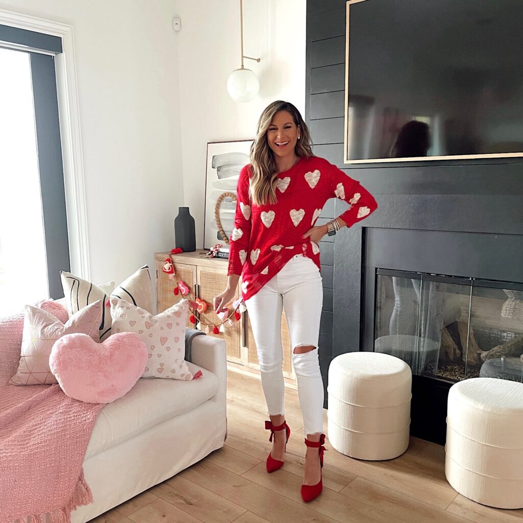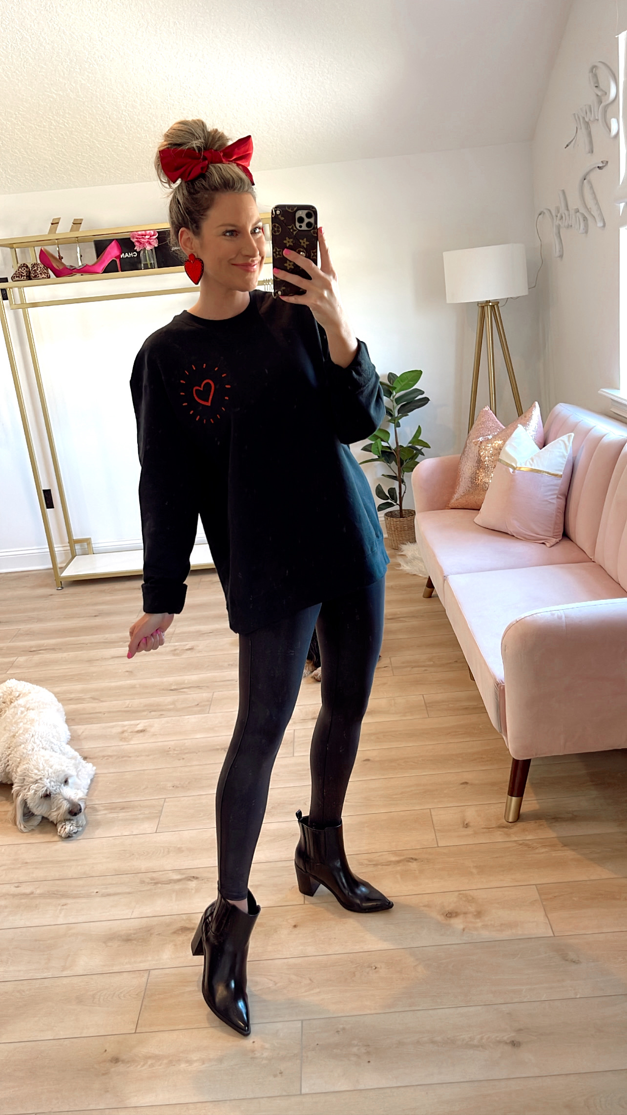 Heart love sweatshirt. Wearing a large for an oversize fit. $32 prime.