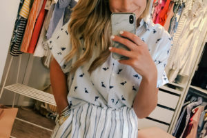 Wide cut stripe shorts (wearing size 6) with Rolled Sleeve Tee (wearing size small) and Straw HatÂ