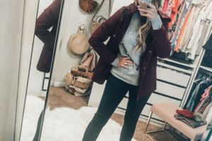 Wine Coat + Pearl Sweater