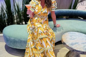 In a small farm Rio maxi from anthropologie and accessories for cruise/resort wear outfit – all fits TTS.