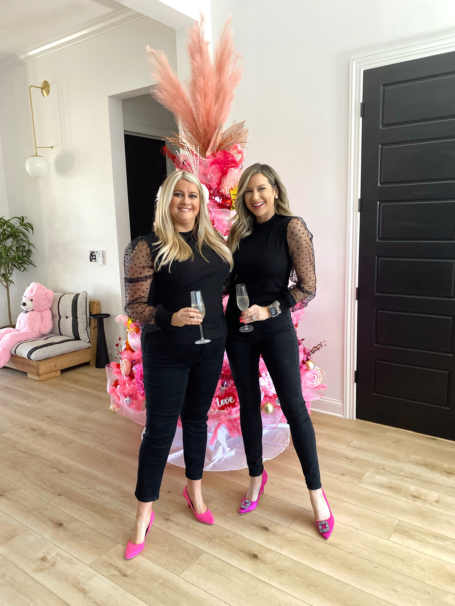 Mock neck mesh sleeve top. Danielle is in a small and Traci is in an XXL. $29 prime.