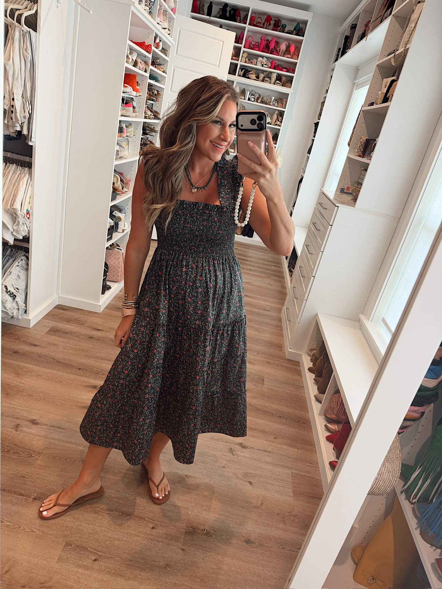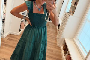In a small Ellie nap dress from Jill house & sandals, necklaces and accessories from Amazon- fits tts. Shop the items here!