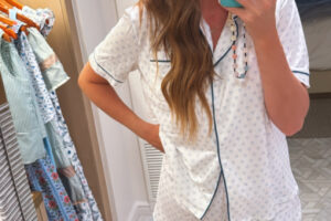 In a small Ellie nap dress, raffia fish bag, mother of pearl fish stud earrings and accessories – fits tts. Shop the items here!