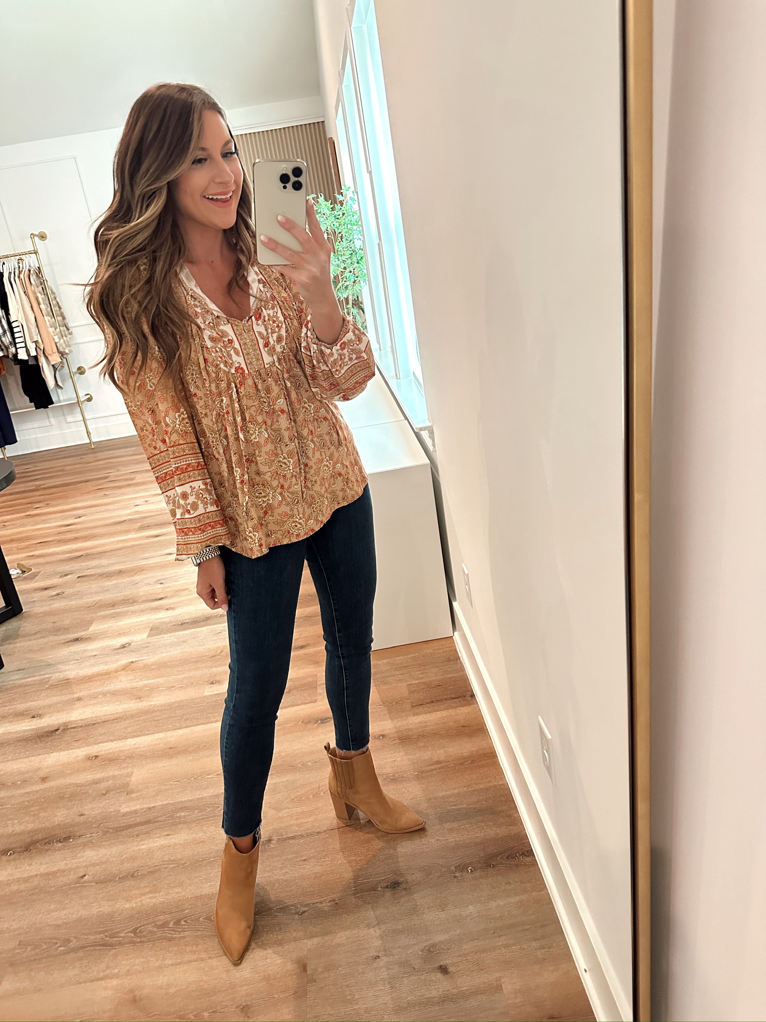 Fall Outfit Top. In a small – fits TTS. $30 prime. Pants. In a 29 – fits TTS. $50 prime. Shoes. $55 prime. Earrings. $17 prime. Apple watch band. $18 prime. Bracelet. Nordstrom. Bracelets on prime: $28, $19, $17, $17, $16 Strapless bra. $22 prime. Bra. $44 prime. Panty. $20 prime. Spanx. $36 prime. subscribe withBlogLovin' or Email share follow me onLIKETOKNOW:IT