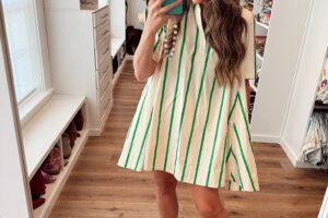 In a medium stripe ruffle sleeve 2 piece set, sandals and accessories- fits tts. Shop the items here!