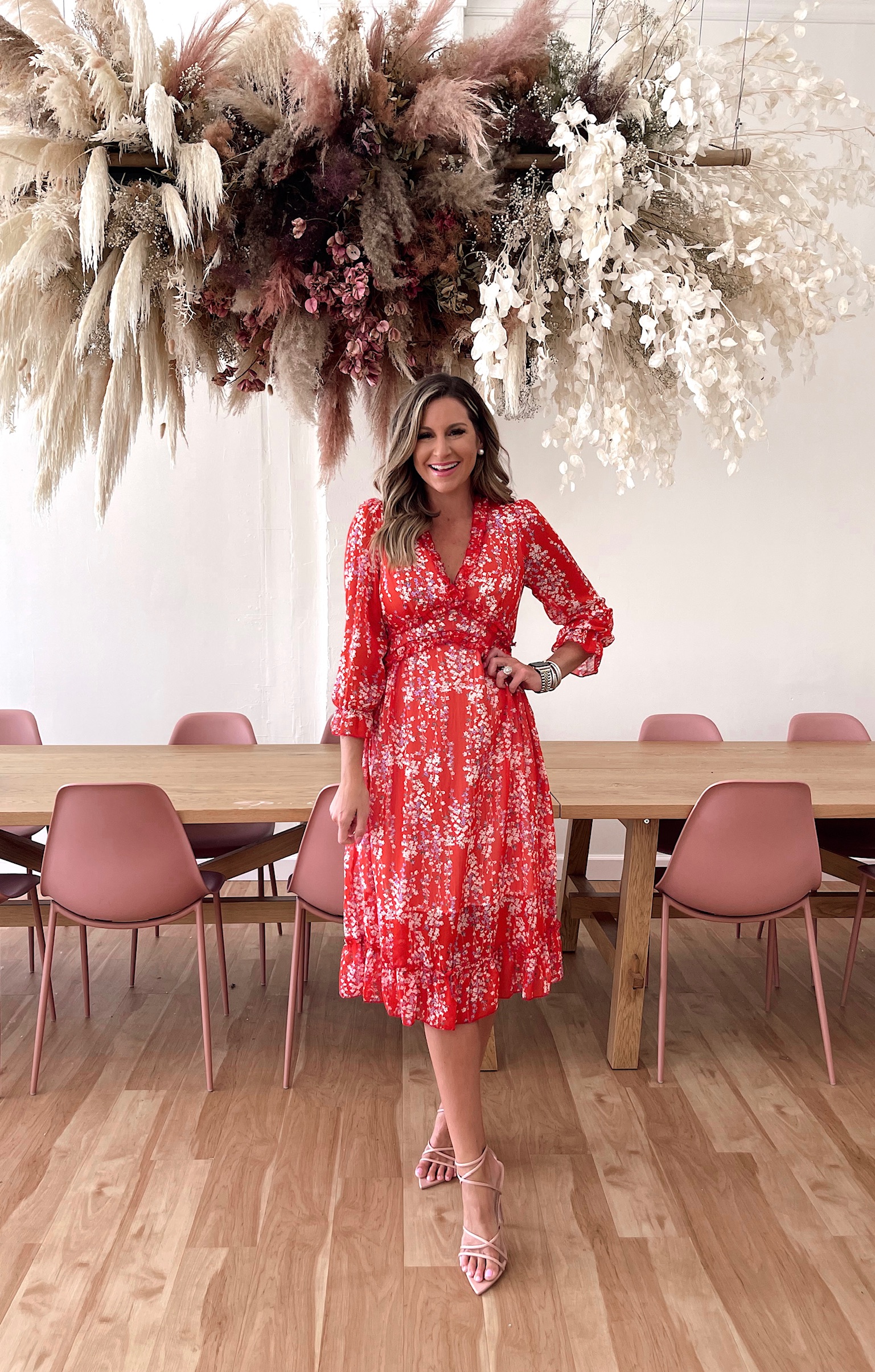 Long Sleeve Floral Wedding Guest Dress
