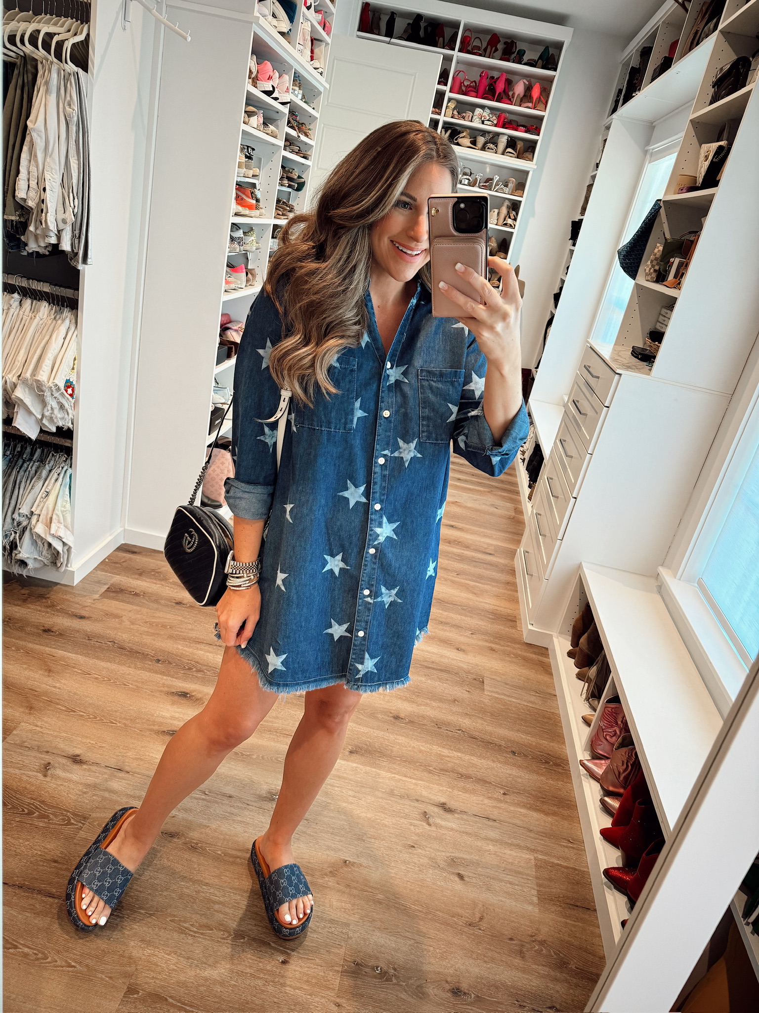 Maternity Outfit In a medium button down denim dress – fits tts. Shop the items here! subscribe withBlogLovin' or Email share follow me onLIKETOKNOW:IT