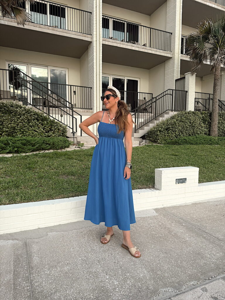 In a small Abercrombie active dress – fits tts. Storms outfit linked from the smocked flamingo! Shop the items here!