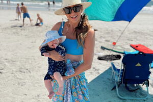 In a medium dress, hat and accessories – fits tts. Baby boy swim linked from Amazon! Shop the items here!