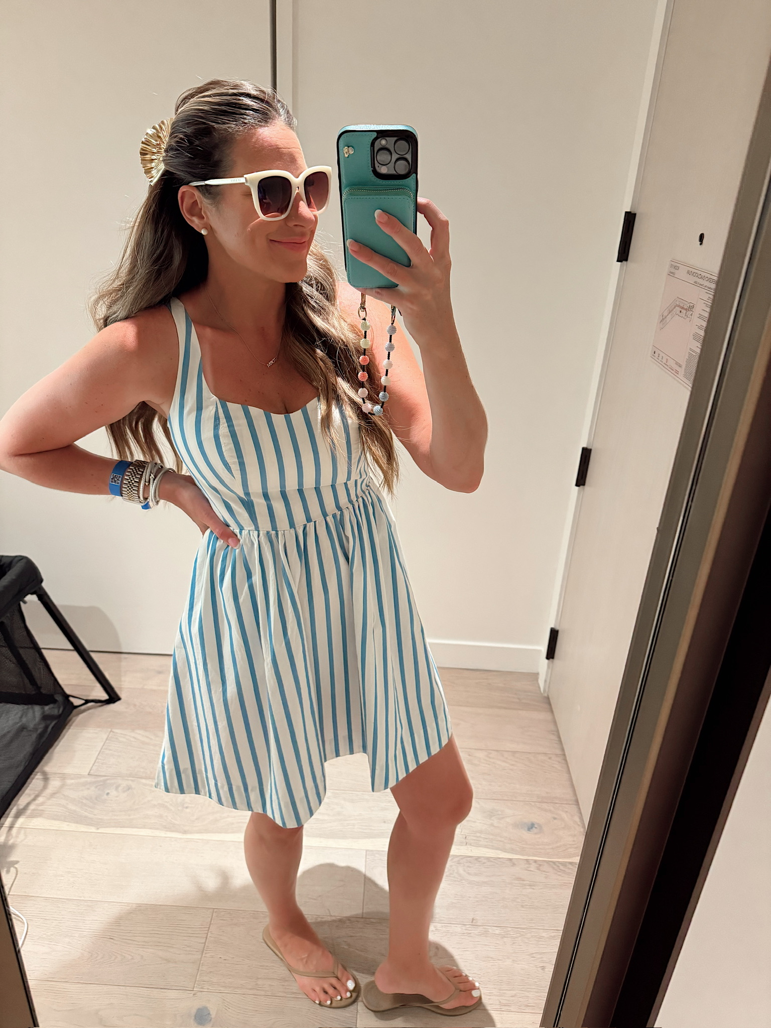 In a small stripe fit and flare dress from Old Navy & accessories from Amazon – fits tts. Shop the items here!