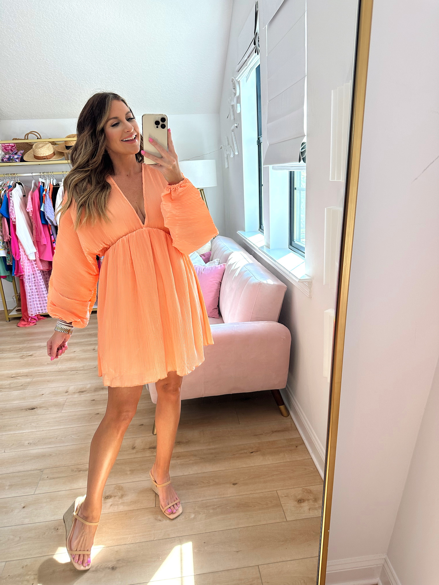 Orange Balloon Sleeve Dress Dress. In a small – fits TTS. $33 prime. Shoes. $49 prime. Earrings. $17 prime. Apple watch band. $18 prime. Bracelet. Nordstrom. Bracelets on prime: $28, $19, $17, $17, $16 Strapless bra. $22 prime. Bra. $44 prime. Panty. $20 prime. Spanx. $36 prime. subscribe withBlogLovin' or Email share follow me onLIKETOKNOW:IT