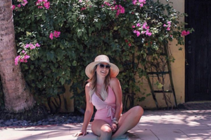 Outfit Details: Express Floral Print Romper (wearing size small), Loft round sunglasses ($15), Soludos lace up wedges in white, BP Statement Earrings.
