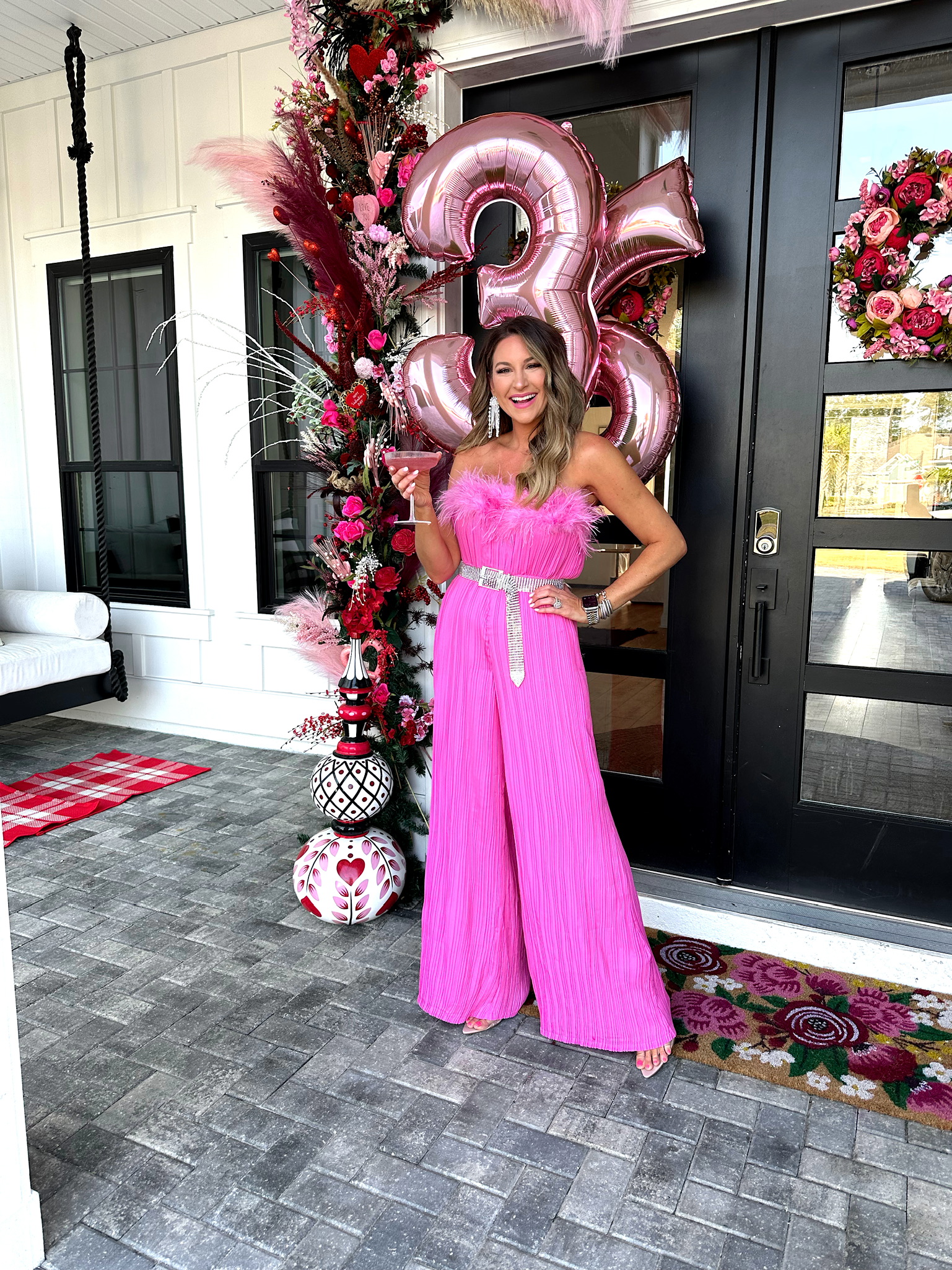 Pink Feather Trim Wide Leg Jumpsuit Jumpsuit. In a size 6 – fits TTS. $46 Boo Hoo. Shoes. $30 prime. Belt. $24 prime. Earrings. $10 prime. Earrings. $17 prime. Apple watch band. $21 prime. Bracelet. Nordstrom. Bracelets on prime: $15, $19, $19, $15, $16 Strapless bra. $22 prime. Bra. $44 prime. Panty. $20 prime. Spanx. $36 prime. subscribe withBlogLovin' or Email share follow me onLIKETOKNOW:IT