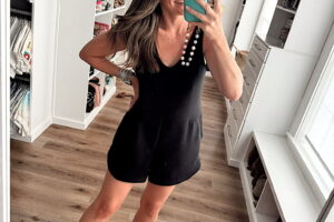 In a medium zip front puff sleeve dress, hat, espadrille wedges, raffia clutch and accessories- fits tts. Shop the items here!